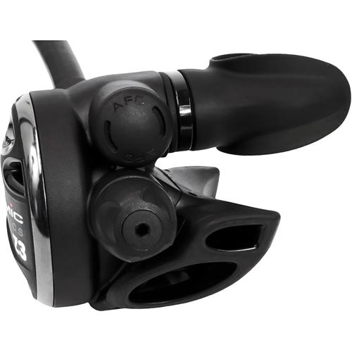 The Z series second stage is equipped with Atomic's patented automatic flow control (AFC) for optimal breathing resistance. A soft over-molded rapid adjustment knob is available for special situations. The titanium comfort swivel eliminates the "pulling effect" when turning your head underwater, allowing 30 Degree rotational movement without binding or kinking.