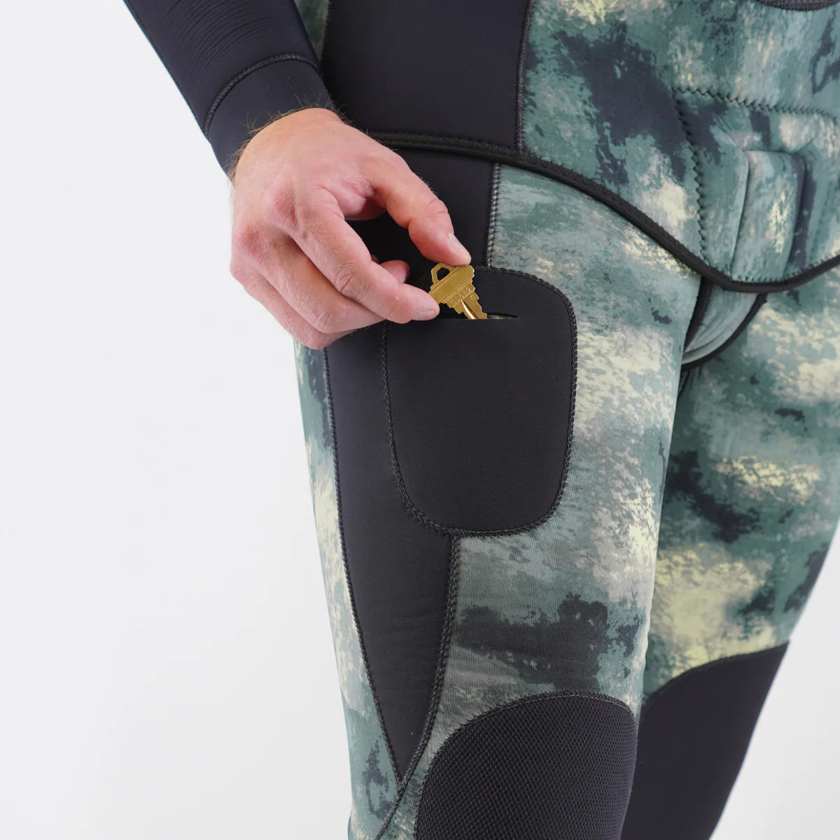 Its kelp-inspired green camouflage blends seamlessly into underwater terrain—ideal for stealth approaches while spearfishing or wildlife watching.