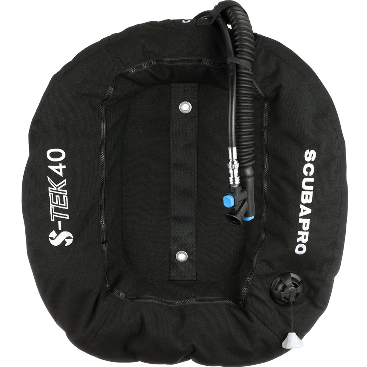 The donut wing is constructed of durable 1000D Cordura outer shell and 500D Cordura inner bladder. Improved rounded profile reduces air trapping. Wing features an elliptical EPDM corrugated inflator hose and Scubapro's K-Style Balanced Power Inflator (BPI). Scubapro BPI mechanism: Scubapro's BPI provides a high inflation speed, especially at depth. Inflator has different shaped inflation and purge buttons for easy use even in extremely low light or murky water conditions. Inflator is also equipped with a rapid pull dump mechanism with cable pull for easy deflation of the air bladder. Included with the inflator is a 3/8" threaded low-pressure hose for attachment to the first stage regulator. For trimming buoyancy when diving in an inverted position the donut wing has a left lower overpressure relief/pull dump valve with pull cord. The wing weighs 2.43 lbs. (1.1kg).